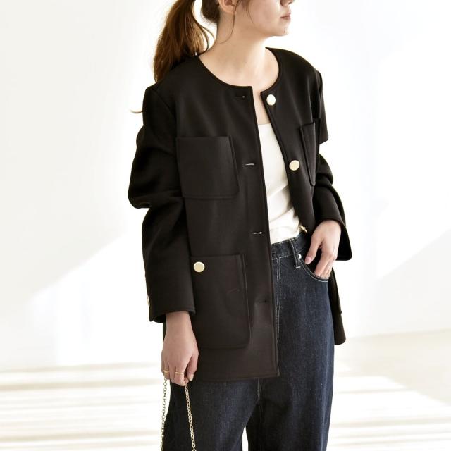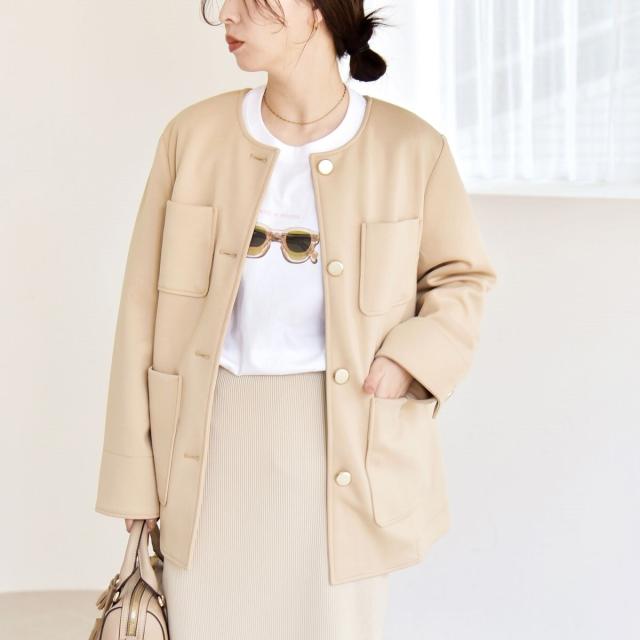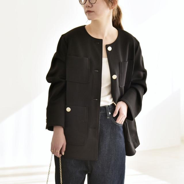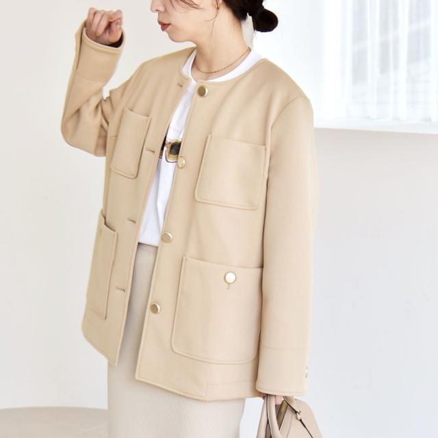 カランシエル(quaranciel)/《予約》quaranciel:〈手洗い可能〉ジャージー ポケット ノーカラー ジャケット
