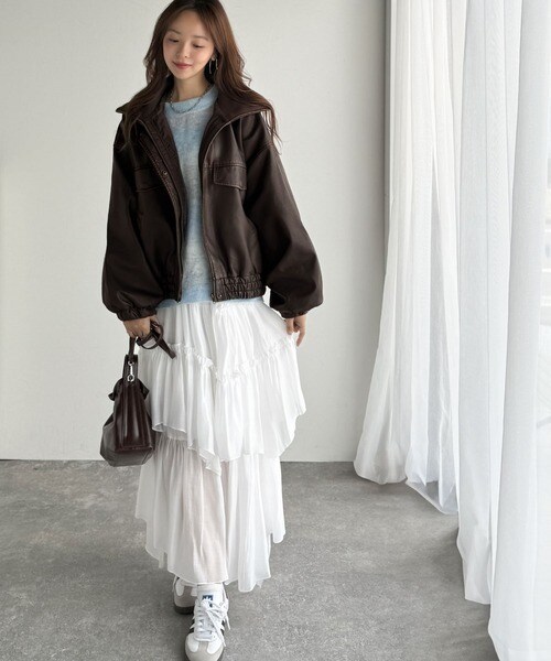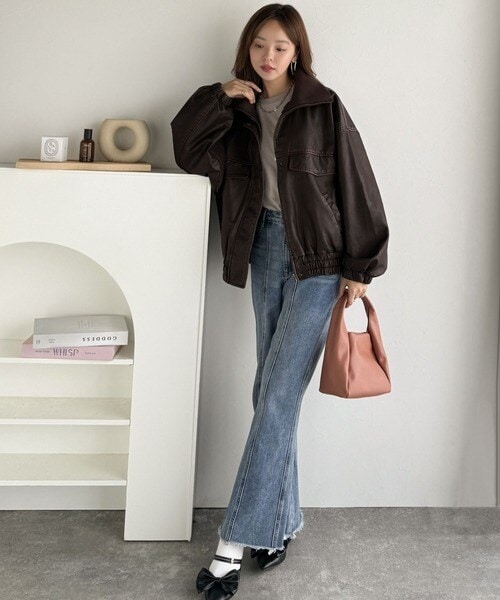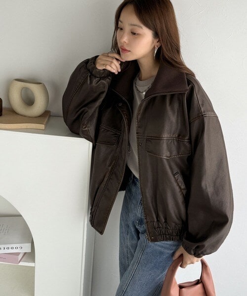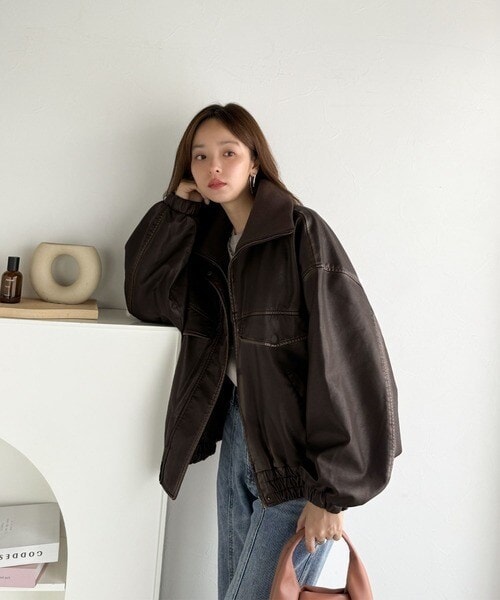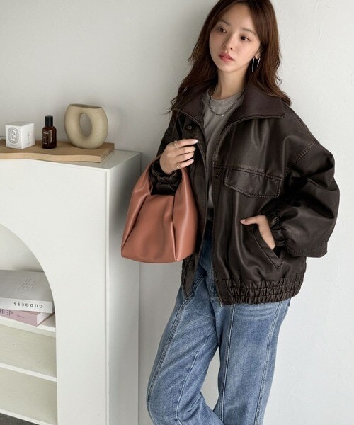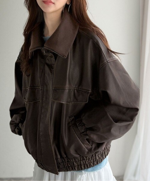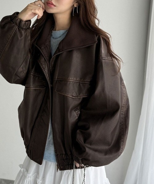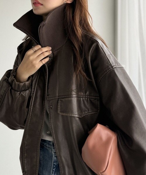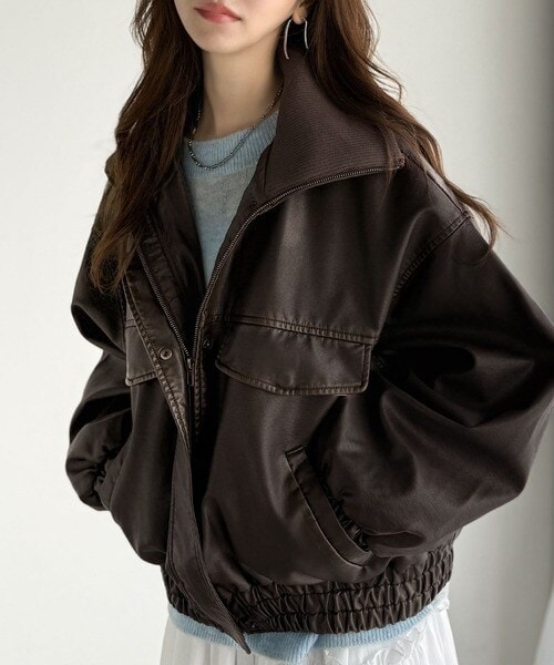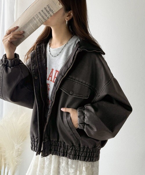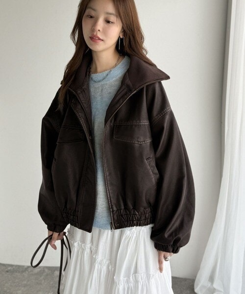 ■detail ヴィンテージにあるフライトレザージャケットのような BIGフラップがポイントになったフェイクレザーブルゾン。アズールバイマウジー(AZUL BY MOUSSY)/フェイクレザーショートブルゾン。ランダ(RANDA)/ウールライクペプラムショートコート。 柔らかくしなやかなシルエットで体に馴染む着用感です。フィフス(fifth)/フェイクウールブルゾン。プロポーション ボディドレッシング(PROPORTION BODY DRESSING)/襟付きジップカットジャケット 25AW。