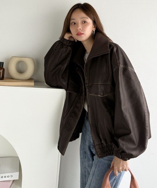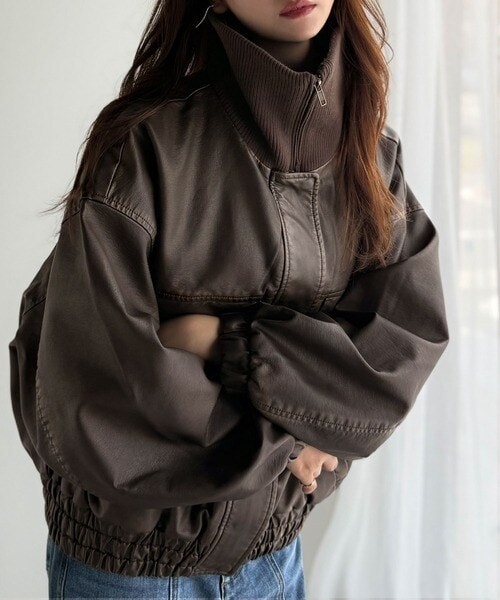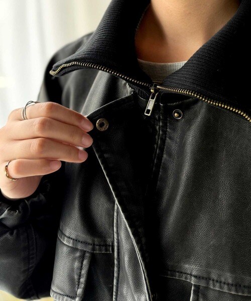 《メンズもレディースもお揃いで着れちゃう、フェイクレザージャケット》 羽織るだけでトレンド感のあるコーデに仕上がる万能アウター。クラシカルエルフ(Classical Elf)/ベーシックアウターを、素材感で大人見えに◎リングシャギーショートコクーンシルエットジャケット。クラフトスタンダードブティック(CRAFT STANDARD BOUTIQUE)/フェイクレザー衿ボアブルゾン。