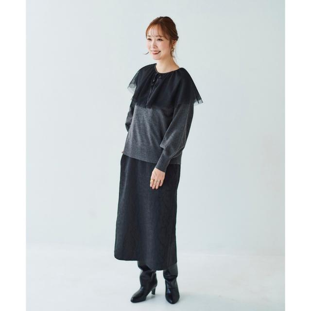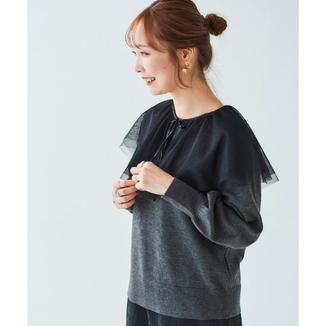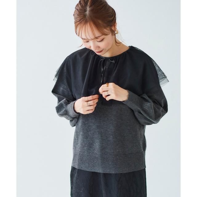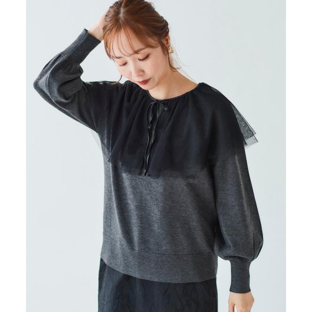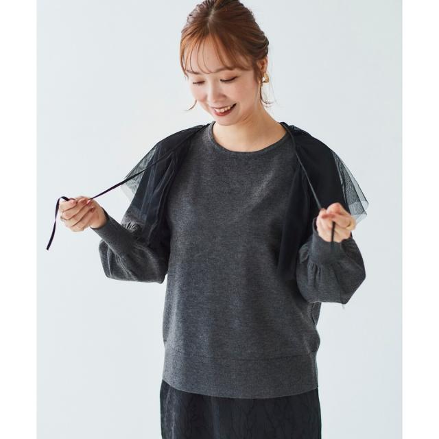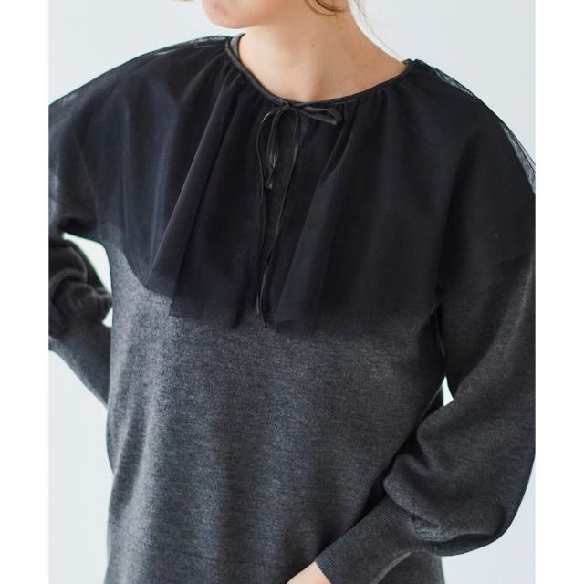 ルクールブラン(le.coeur blanc)/《WEB限定アイテム》チュールケープ付き2wayニット