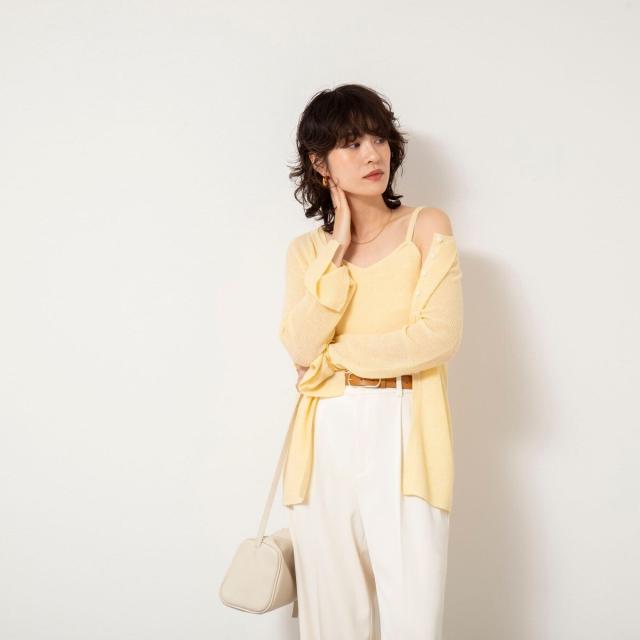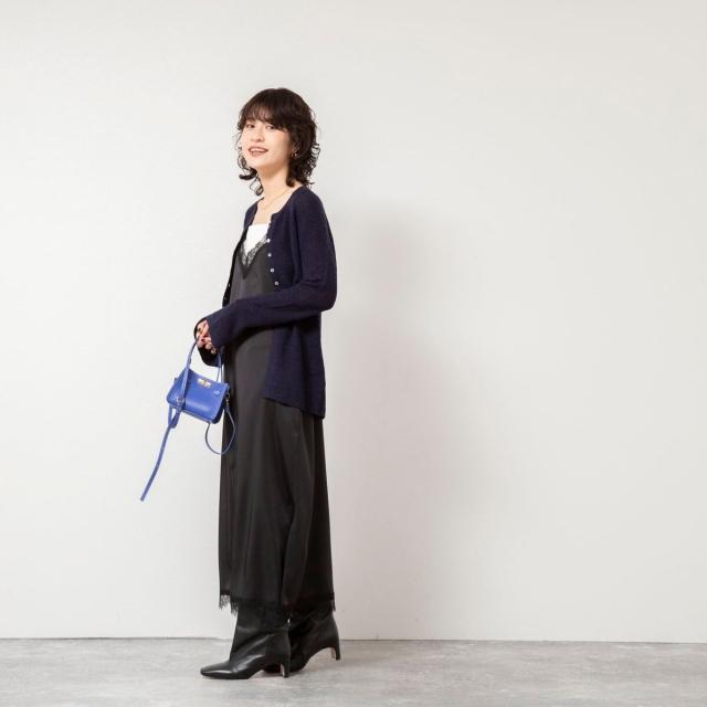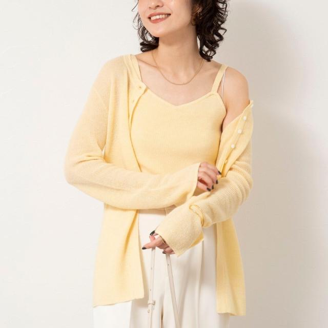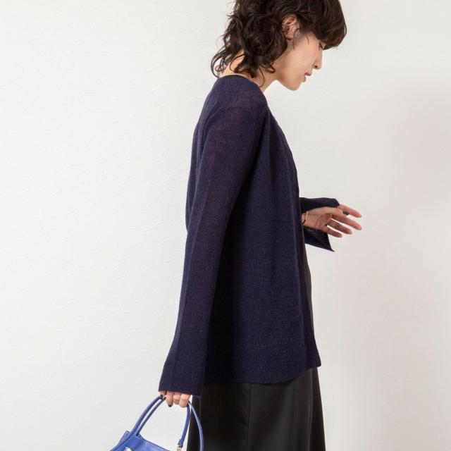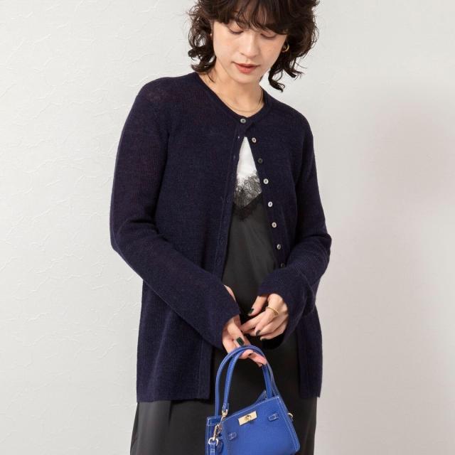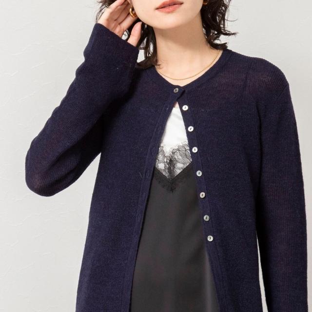 ノーリーズソフィー(NOLLEY’S sophi)/《手洗い可能》モヘヤ混片畦ミディ丈Cネックカーディガン