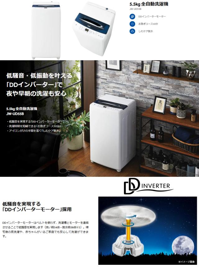 【Bエリア限定配送】JW-UD55B-W(ホワイト)全自動洗濯機【5.5kg】