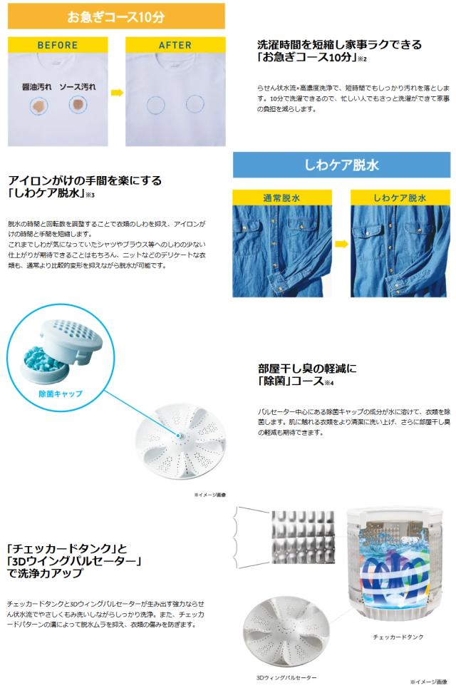 チェッカードタンクと3Dウィングパルセーターが生み出す強力ならせん状水流でやさしくもみ洗いしながらしっかり洗浄。全自動洗濯機 7.0kg 風乾燥機能 1人暮らし 省エネ 新生活 Haier ハイアール JW-U70B-W。ハイアール(Haier) JW-W80F-W ホワイト 二槽式洗濯機 洗濯8kg/脱水5kg。