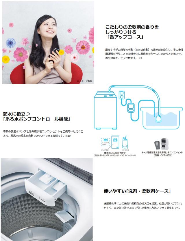 市販の風呂水ポンプと赤外線リモコンコンセントをご使用いただくことで、風呂水の給水を自動でON/OFFできる機能です。ハイアール(Haier) JW-W80F-W ホワイト 二槽式洗濯機 洗濯8kg/脱水5kg。【設置】ハイアール(Haier) JW-U61C-K ブラック 全自動洗濯機 上開き 洗濯6kg。位置が高いので入れやすく、また取り外せるので汚れた場合も丸洗いできて衛生的です。