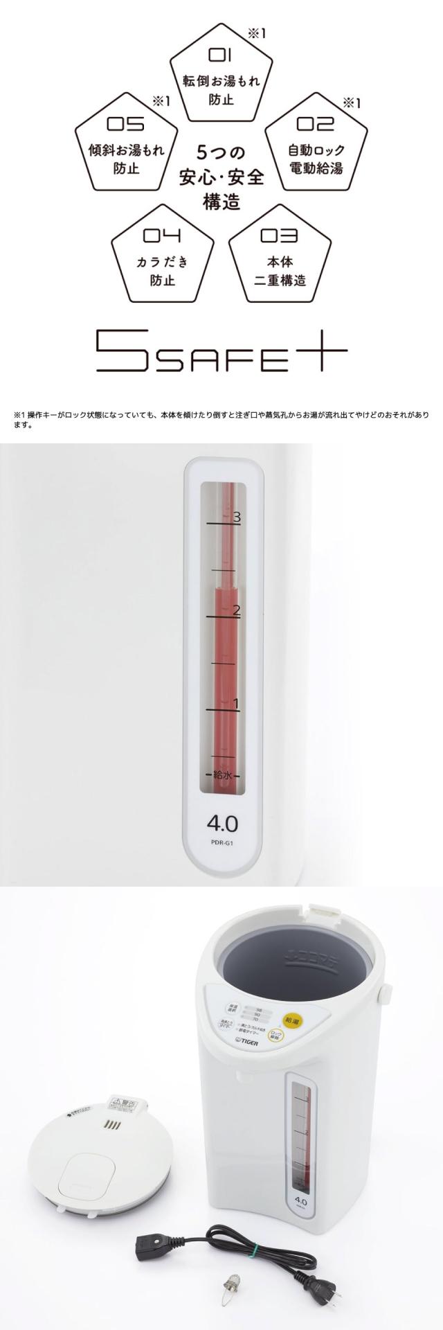 熱湯だけでなくお好みの湯温に調節できるから、お料理の下ごしらえなどにもお使いいただけます。電気ポット タイガー TIGER タイガー魔法瓶 湯沸し 電気湯沸し 湯沸し器 電気 保温 電動給湯 ホワイト PDR-G401-W。