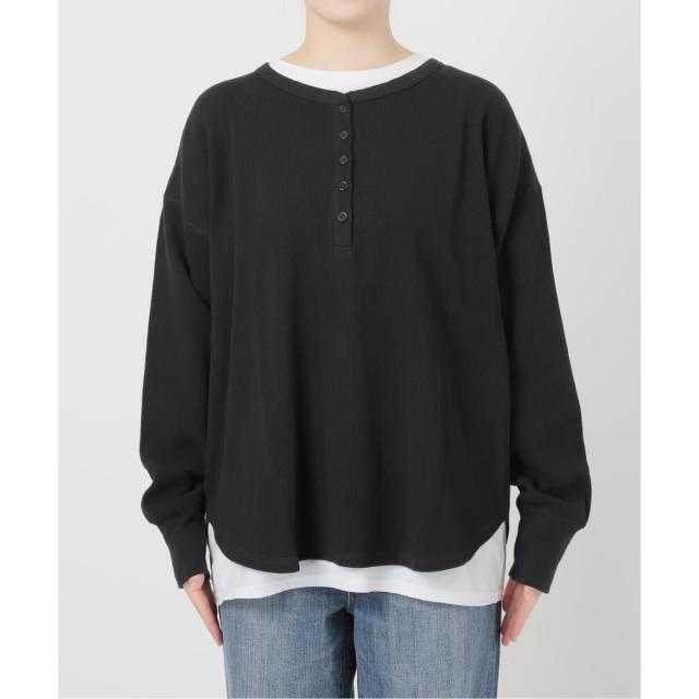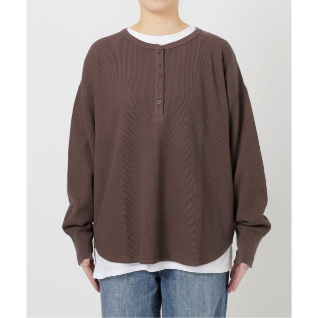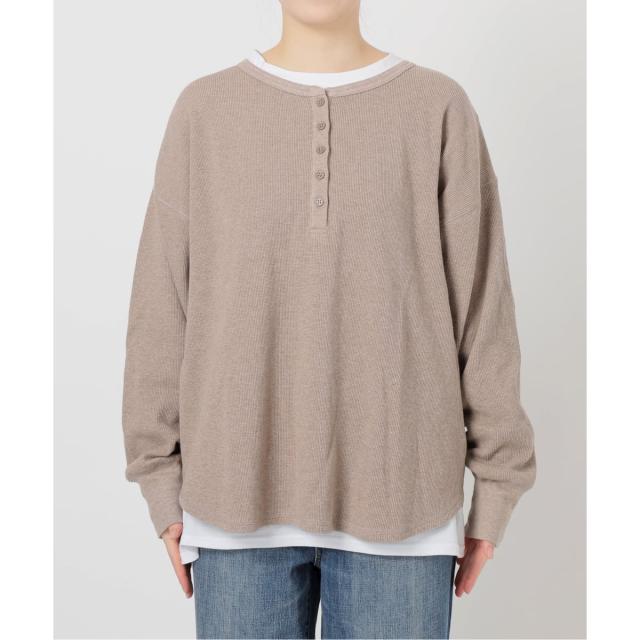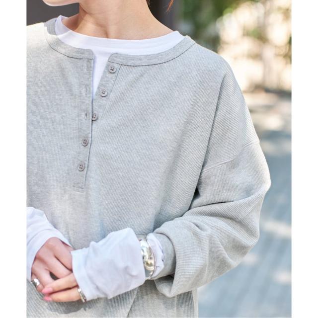 ヘンリーネックのサーマルとロンTのセットは、重ねるだけでニュアンスのある大人カジュアルに。アーバンリサーチ サニーレーベル(URBAN RESEARCH SonnyLabel)/MAGIC NUMBER US COTTON W SLEEVE T−SHIRTS。スピック&スパン(Spick and Span)/シアーベロアプルオーバー。