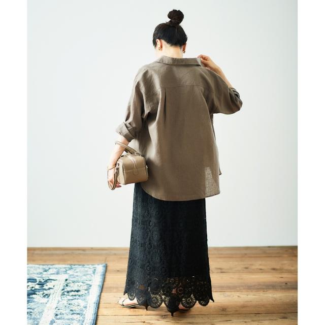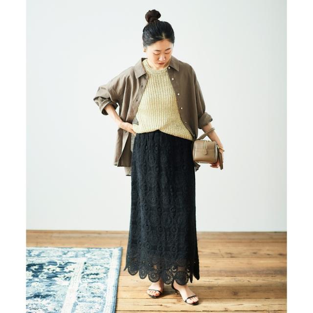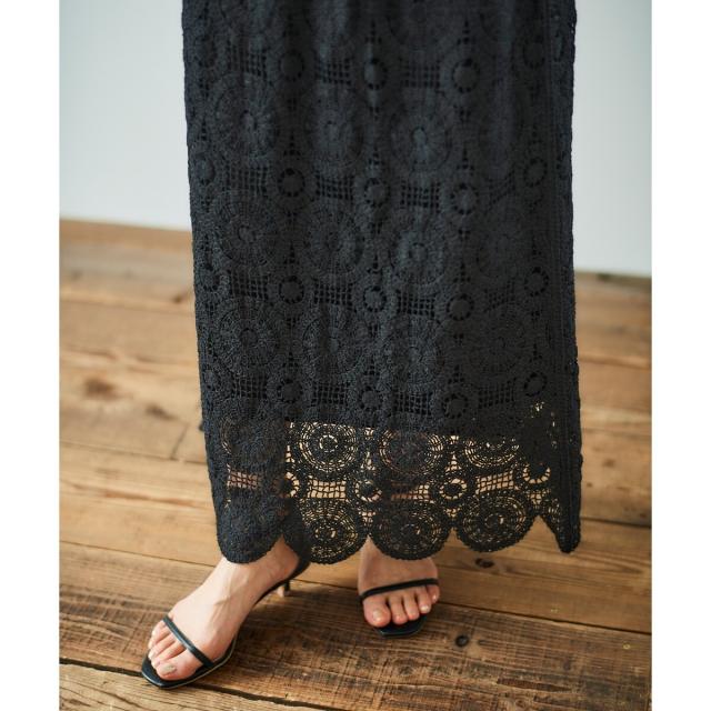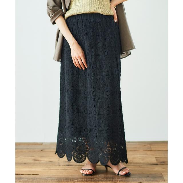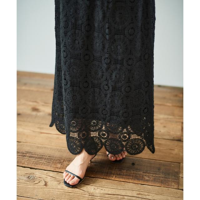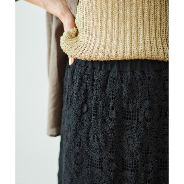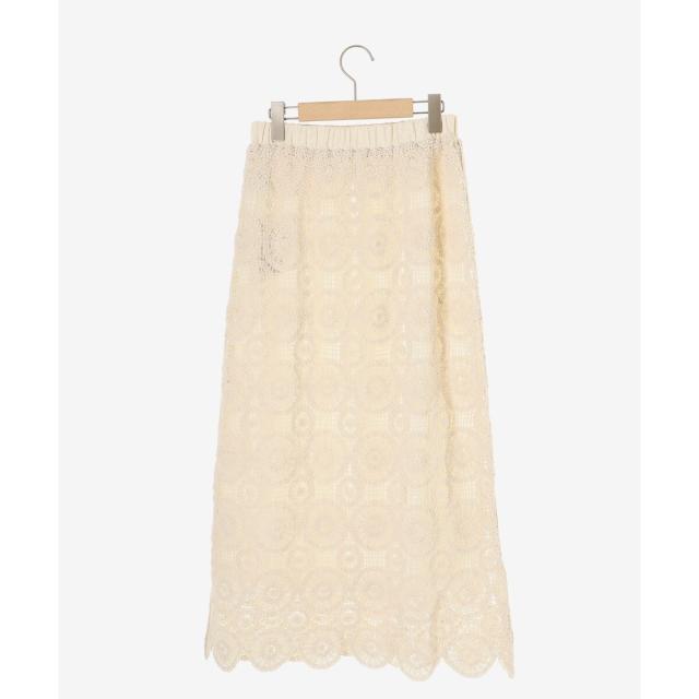 ルクールブラン(le.coeur blanc)/《手洗い可能》カギ針レースウエストリブスカート