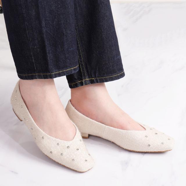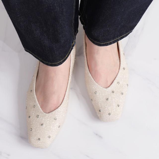 アルテミス by ダイアナ(artemis by DIANA)/ビジューデザイン シャギーフラットシューズ《雑誌掲載商品》
