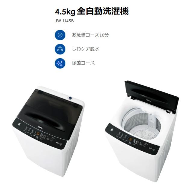 【Bエリア限定配送】JW-U45B-K(ブラック)全自動洗濯機【4.5kg】