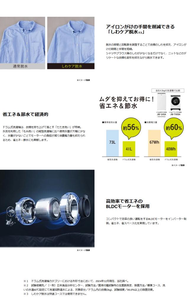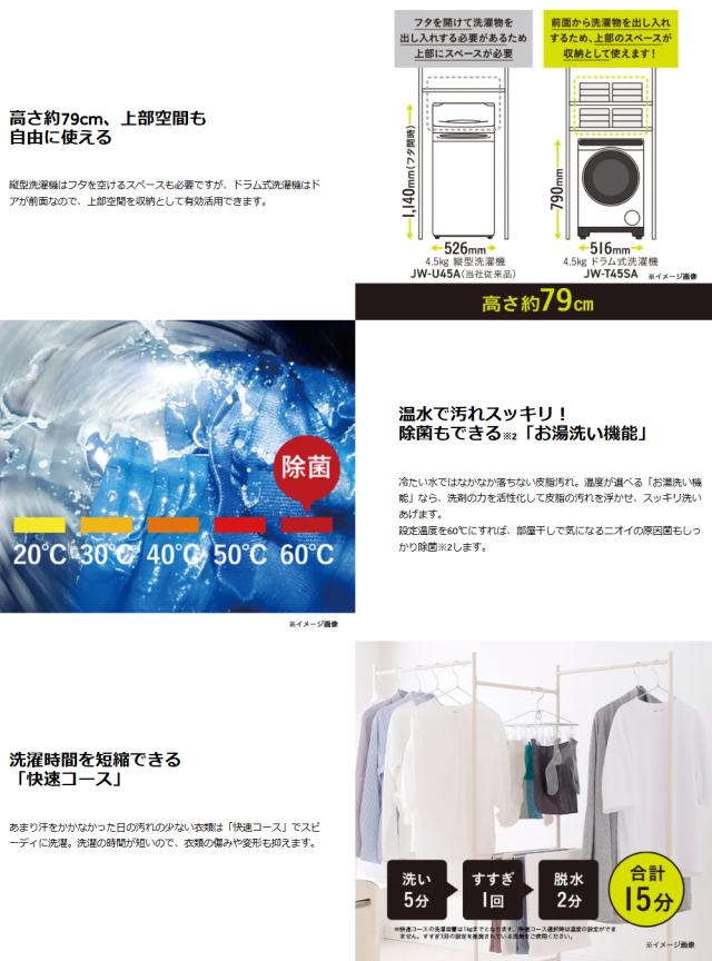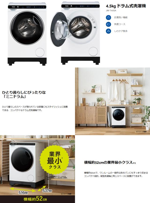 【Bエリア限定配送】【標準設置無料】JW-T45SA(W)ドラム式洗濯機【4.5kg】ホワイト