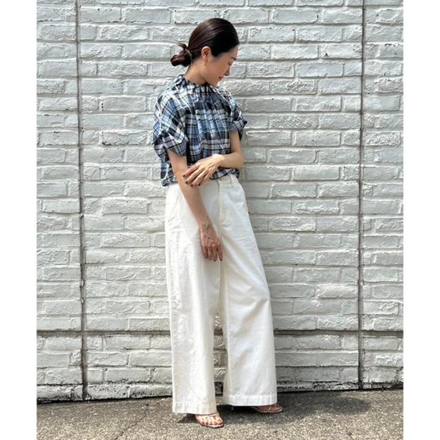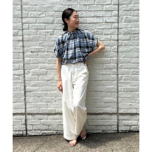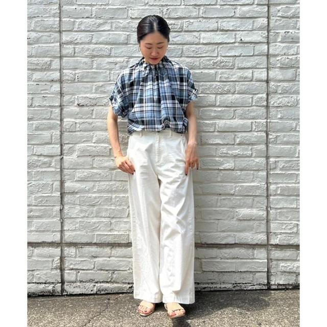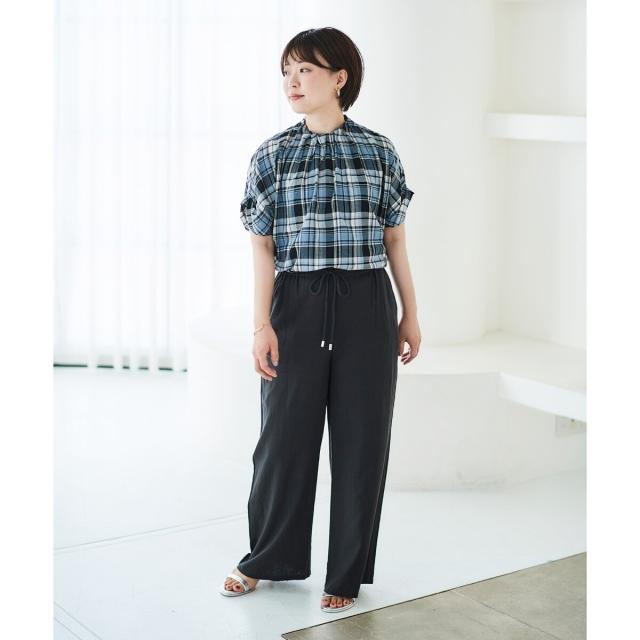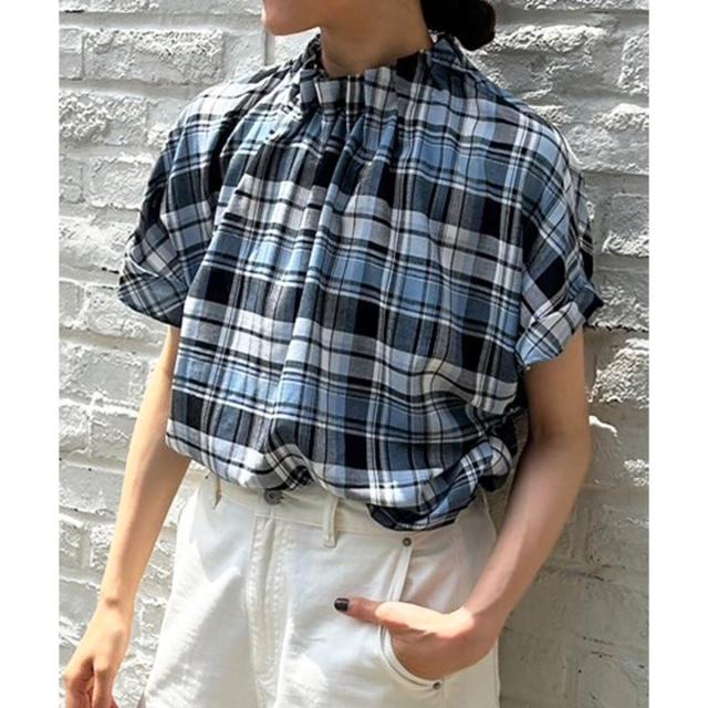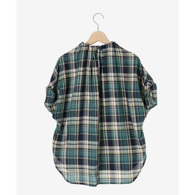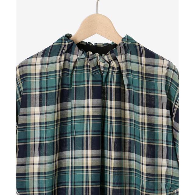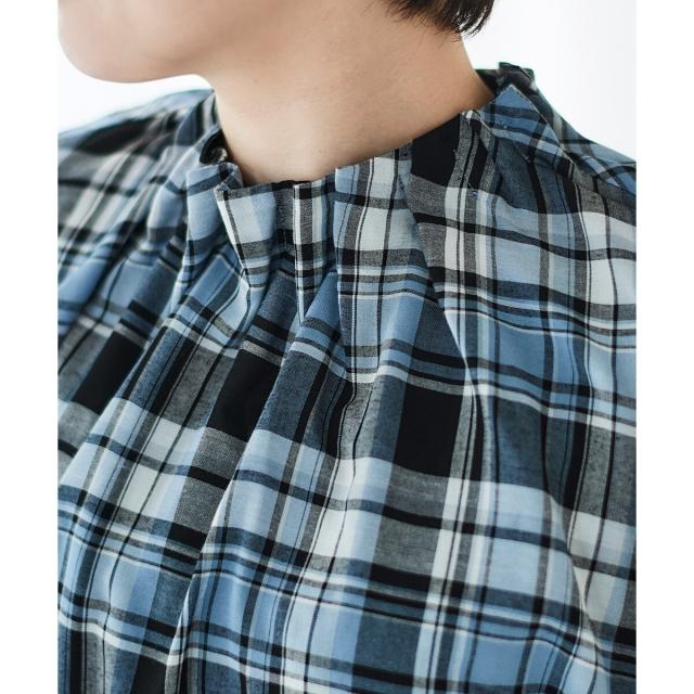 ルクールブラン(le.coeur blanc)/《手洗い可能》チェックハイネックギャザードルマンフレンチブラウス