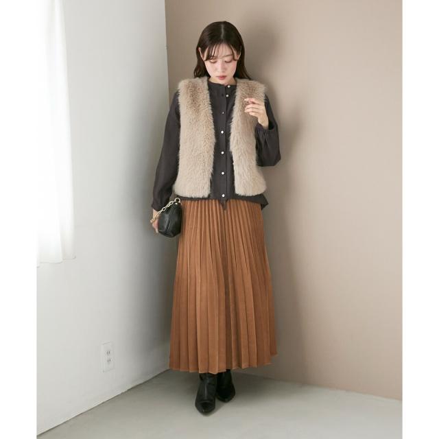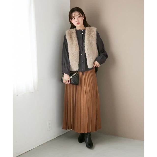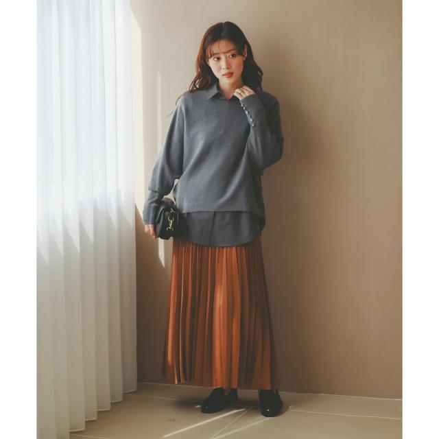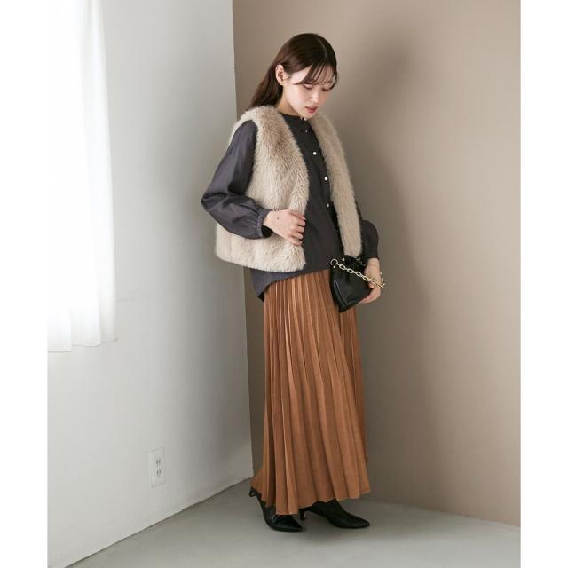 ルクールブラン(le.coeur blanc)/《手洗い可能》マロンサテン変形プリーツスカート
