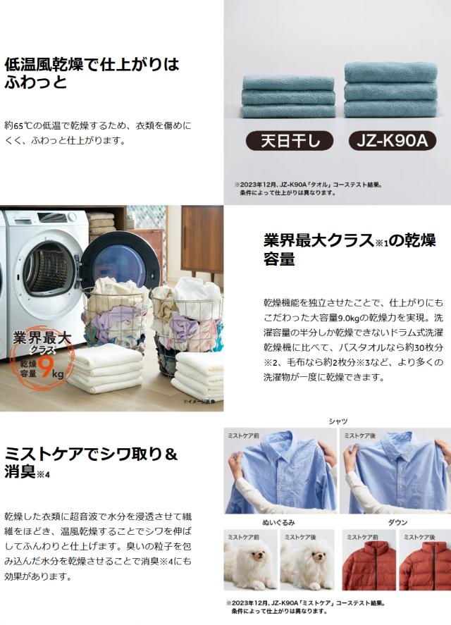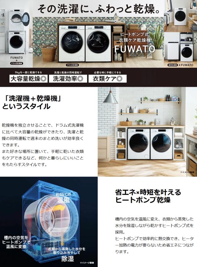 【Bエリア限定配送】JZ-K90A-W(ホワイト)ヒートポンプ式衣類ケア乾燥機「FUWATO」【9.0kg】