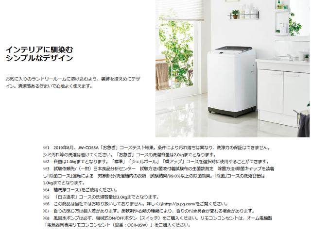 市販の風呂水ポンプと赤外線リモコンコンセントをご使用いただくことで、風呂水の給水を自動でON/OFFできる機能です。位置が高いので入れやすく、また取り外せるので汚れた場合も丸洗いできて衛生的です。清潔感ある佇まいで心地よく使えます。【長期保証付】パナソニック(Panasonic) NA-F5B3-H ライトグレー 全自動洗濯機 上開き 洗濯5kg。10分で洗濯できるので、忙しい人でもさっと洗濯ができて家事の負担を減らします。アイリスオーヤマ(Iris Ohyama) ITW-100B01-W ホワイト 全自動洗濯機 10.0kg。【長期保証付】ハイアール(Haier) JW-LD75C-W ホワイト 全自動洗濯機 DDインバーター 上開き 洗濯7.5kg。これまでしわが気になっていたシャツやブラウス等へのしわの少ない仕上がりが期待できることはもちろん、ニットなどのデリケートな衣類も、通常より比較的変形を抑えながら脱水が可能です。【長期保証付】アクア(AQUA) AQW-S7A-W ホワイト 全自動洗濯機 上開き 洗濯7kg。【長期保証付】アクア(AQUA) AQW-S7A-W ホワイト 全自動洗濯機 上開き 洗濯7kg。肌に触れる衣類をより清潔に洗い上げ、さらに部屋干し臭の軽減も期待できます。日立(HITACHI) PS-55AS2-W ホワイト 青空 2槽式洗濯機 洗濯5.5kg/脱水5.5kg。ツインバード(TWINBIRD) WM-EA90W 全自動電気洗濯機 洗濯9kg。また、チェッカードパターンの溝によって脱水ムラを抑え、衣類の傷みを防ぎます。Haier ハイアール 【Bエリア限定配送】JW-UD80A-W(ホワイト)全自動洗濯機【8.0kg】。【長期保証付】ハイアール(Haier) JW-UD80B-W ホワイト 全自動洗濯機 上開き 洗濯8kg。洗濯後に使用することでカビの発生を抑制する効果が期待できます。【長期保証付】パナソニック(Panasonic) NA-F5B3-H ライトグレー 全自動洗濯機 上開き 洗濯5kg。【設置+長期保証】ハイアール(Haier) JW-UD61C-W ホワイト 全自動洗濯機 上開き 洗濯6kg。通常よりも長く、洗いとすすぎを行うことでしつこい汚れもすっきり落として衣類を白く洗浄します。【リユース】 アウトレット保証セット BW-V90F 日立 シャンパン ビートウォッシュ [全自動洗濯機(9.0kg)] [2020〜2021年製]。パナソニック(Panasonic) NA-F7PB5-W ホワイト 全自動洗濯機 洗濯7kg パスポンプ搭載モデル。