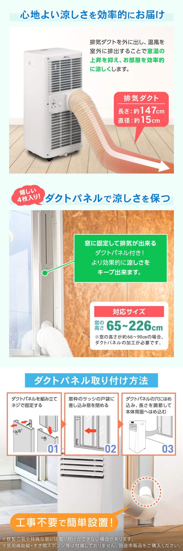 窓に固定して排気が出来るダクトパネル付き!