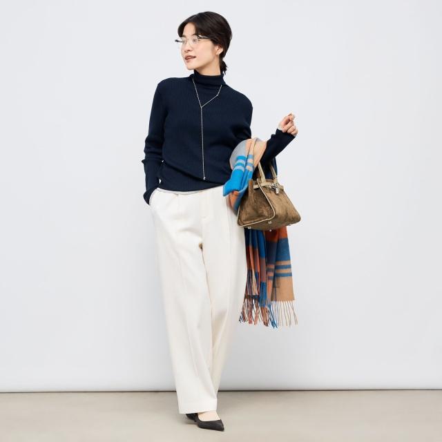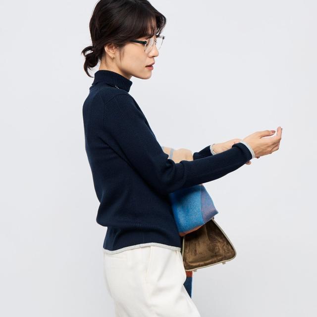 ノーリーズ(NOLLEY’S)/《手洗い可能》3×2リブ配色タートルネック