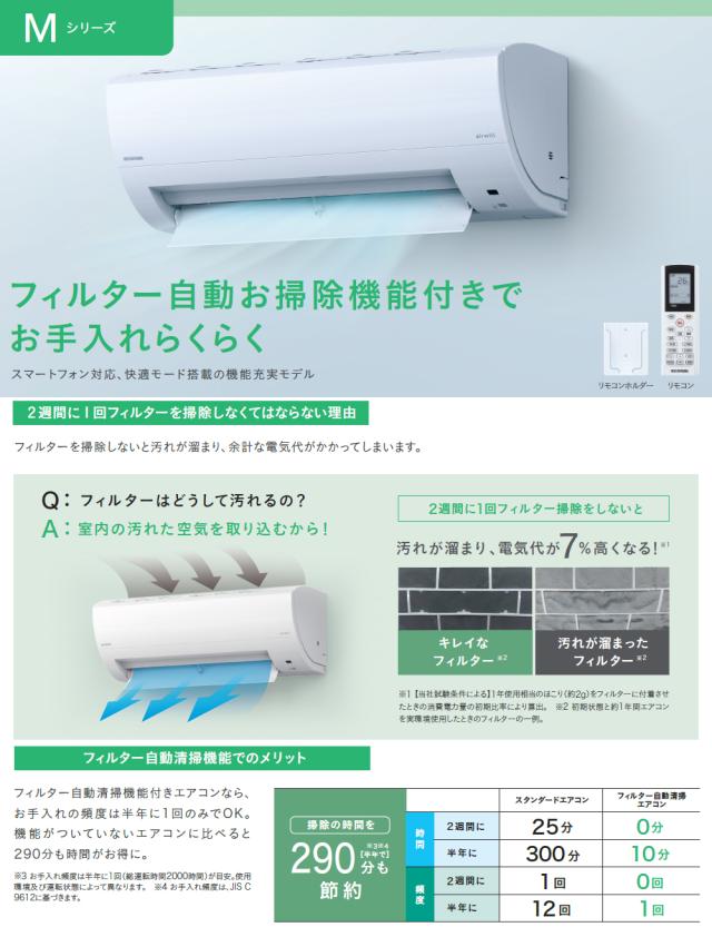 24時間冷房・暖房・送風・除湿・自動を稼働するとフィルターを自動清掃します。