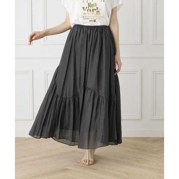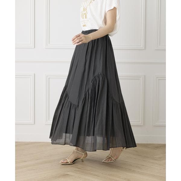 イネド(INED)/《大きいサイズ》アシンメトリー切り替えギャザースカート