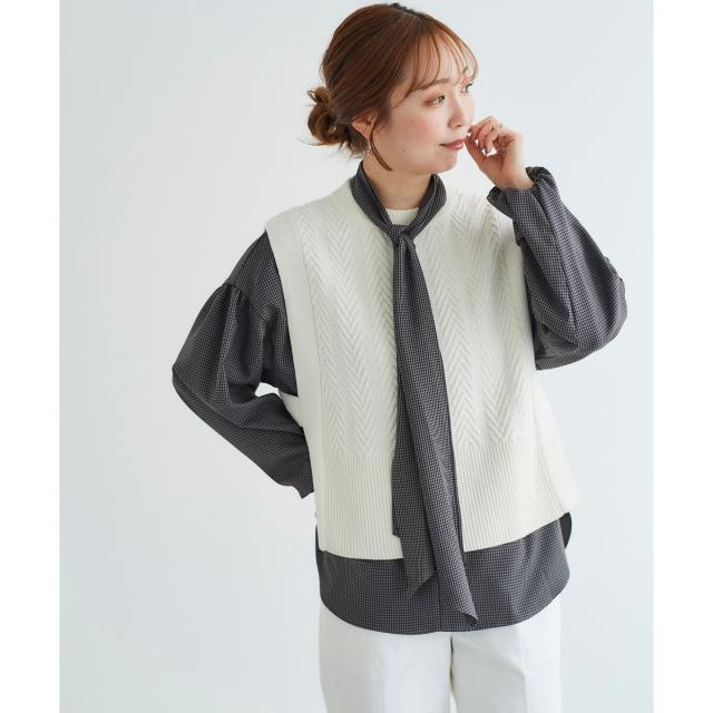 ルクールブラン(le.coeur blanc)/《手洗い可能》ガンクラブチェックボウタイブラウス