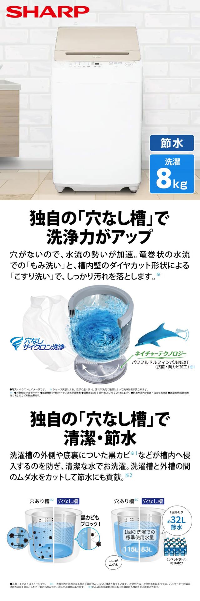 SHARP ES-GV8J-N ゴールド系 [全自動洗濯機 (8.0kg)]