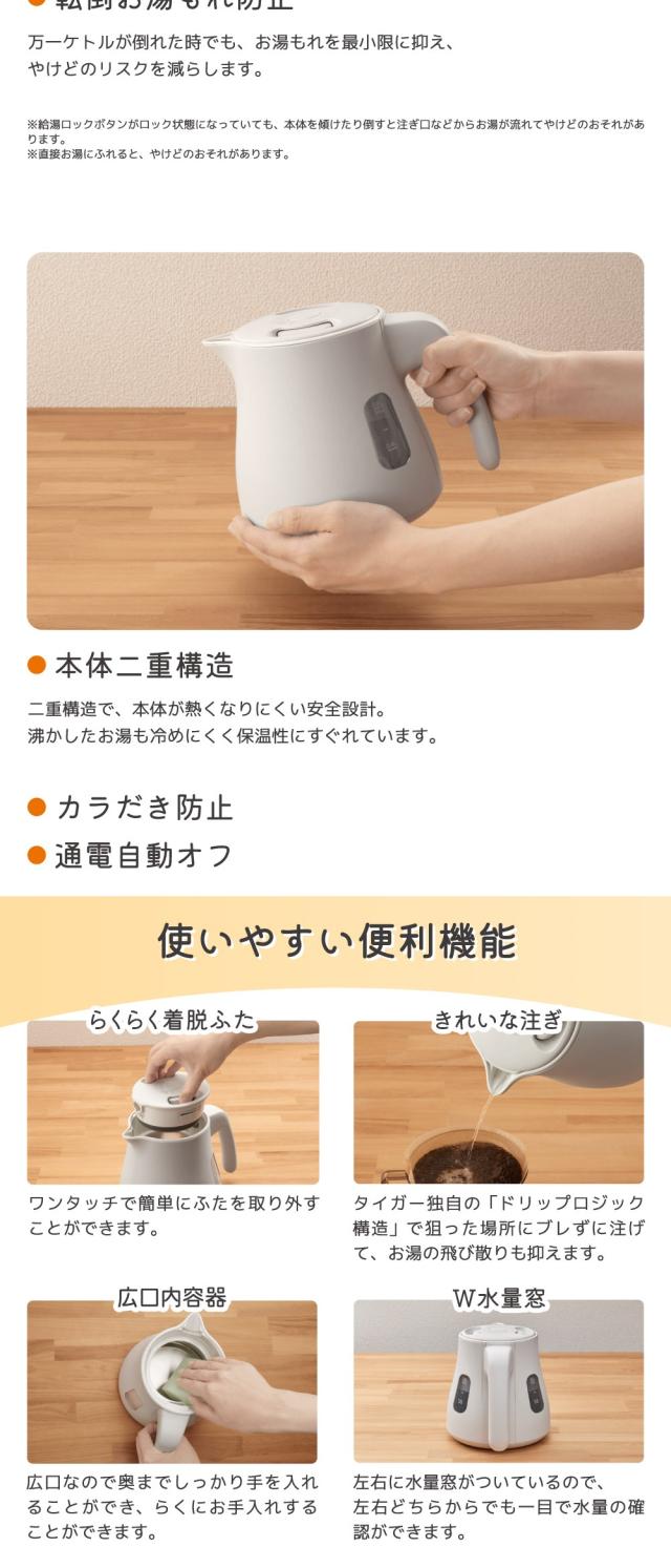 【ギフト】タイガー魔法瓶 電気ケトル0.8L アッシュグレー PCS-A080HA 【北海道・沖縄・離島配送不可】