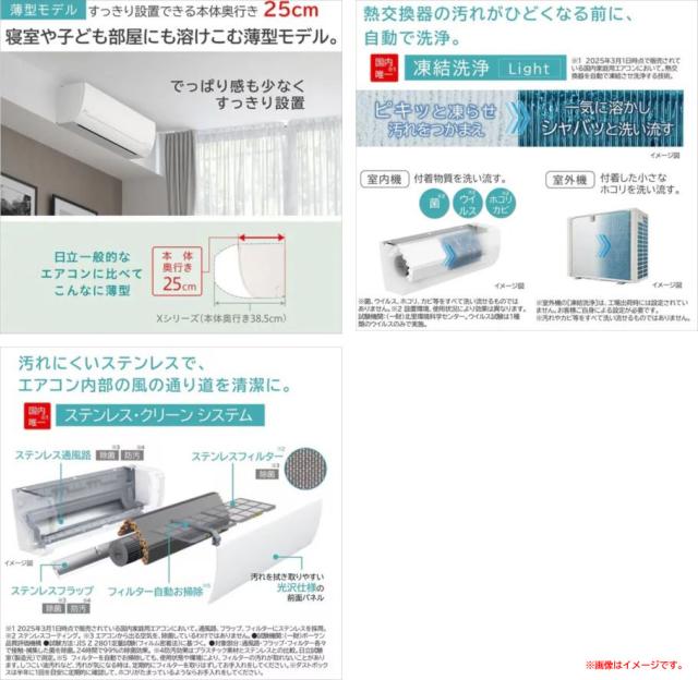 三菱 【2026年モデル】【標準工事セットエアコン】 霧ヶ峰 MSZ-ZW2226-W返品種別A 【商品特長】 三菱電機 PLZX-ERMP80SL5 業務用エアコン スリムER 2方向天井カセット形 ワイヤード 冷暖兼用同時ツイン 単相200V MITSUBISHI (代引不可) (法人限定) ◆「凍結洗浄【Light】」で熱交換器の汚れがひどくなる前に、自動で洗浄。エアコン 23畳用 工事費込み ダイキン 7.1kW 200V AXシリーズ 2026年モデル S716ATAV-W-SET ホワイト S716ATAV-W-ko3 室外電源モデル 23畳用 工事費込みエアコン ダイキンエアコン フィルター自動お掃除 節電 クーラー 冷房 暖房。 三菱電機 PCZX-ERMP80SK5 業務用エアコン スリムER 天吊形 ムーブアイ付分配管 ワイヤード 冷暖兼用同時ツイン 単相200V MITSUBISHI (代引不可) (法人限定) ◆「カビバスター」で一年中内部を見張ってエアコンをカビから守る。エアコン 23畳用 白くまくん Xシリーズ (スターホワイト/200V) プレミアムモデル【標準工事費込み】 日立 RAS-X71R2-W-KOJISET【送料無料】 (RASX71R2WKOJISET)。 エアコン 18畳用 白くまくん Wシリーズ (スターホワイト/200V) [凍結洗浄][ファンお掃除ロボ][カビバスター]搭載 スリムモデル【標準工事費込み】 日立 RAS-WR5625D-W-KOJISET【送料無料】 (RASWR5625DWKOJISET) ◆「シーズン前自動点検」で冷房シーズンを前に、自動で点検 エアコン 23畳用 三菱電機 7.1kW 200V 霧ヶ峰 Xシリーズ 2025年モデル MSZ-X7125S-W-SET ピュアホワイト 23畳用エアコン クーラー 空気清浄機能 フィルター自動お掃除 ムーブアイ 高温みまもり ピュアミスト 正常に運転するか、故障部分がないかを自動で点検。三菱電機 PKZT-ERMP160L5 業務用エアコン スリムER 壁掛形 ワイヤード 冷暖兼用同時トリプル 三相200V MITSUBISHI (代引不可) (法人限定)。 エアコン 6畳用 日立 工事費込み 2.2kW 白くまくん Xシリーズ 2026年モデル RAS-XR2226S-W-SET スターホワイト RAS-XR2226S-W-ko1 6畳用エアコン 設置 クーラー 空気清浄 凍結洗浄 フィルター自動お掃除 「ecoこれっきり」ボタンを押すだけで、お部屋の状況に合わせた運転モードの選択と、快適&省エネ運転を行います。ハウジングエアコン 18畳用 ダイキン 標準パネル 200V 天井埋込カセット形 シングルフロー スゴ暖 S564ACDV-BC40J-W ホワイト。 【当日発送不可】【西濃運輸、個人宅のみ、日時指定不可、北海道・沖縄・離島不可】【外箱破損/在庫あり】DAIKIN ルームエアコン